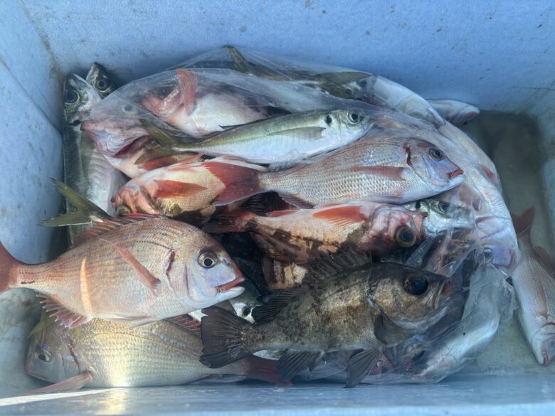 アジビシ五目船 2025年2月21日 アジ 30〜40cm10〜18本 赤・黒メバル 20〜35cm12〜20匹 ハナダイ 25〜40cm3〜10枚 サバ混じり。 アジだけではなく様々な魚種が釣れました! 次回3月4日(火曜) アジビシ五目船で出船予定。