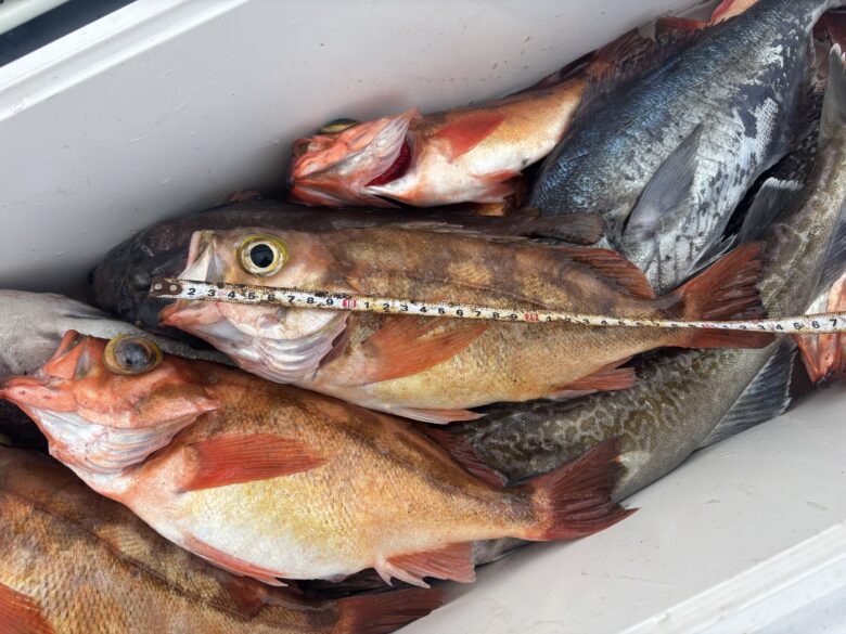 中深場五目船 2025年3月30日 オキメバル 25〜36cm5〜15匹 マゾイ 40〜50cm0〜5匹 ドンコ 40〜45cm3〜10匹 メダイ 45〜55cm1〜5匹 カサゴ・マダラ混じり。 数はあまり上がりませんでしたが 大型・良型サイズ混じりました。