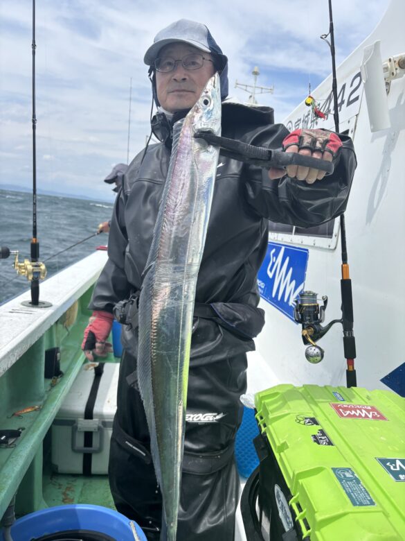 マダイ・タチウオ船 2025年5月4日 タチウオ 65〜110cm2〜15本 メバル・サバ混じり。 マダイ狙いで出船しましたが昨日までの大ウネリで底荒れ苦戦でしたが 中盤からタチウオの群れに当たりお土産出来ました。